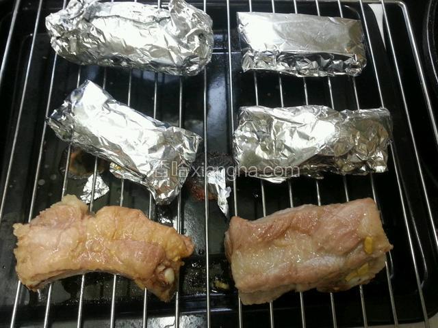 5.把包好排骨放入烤箱;