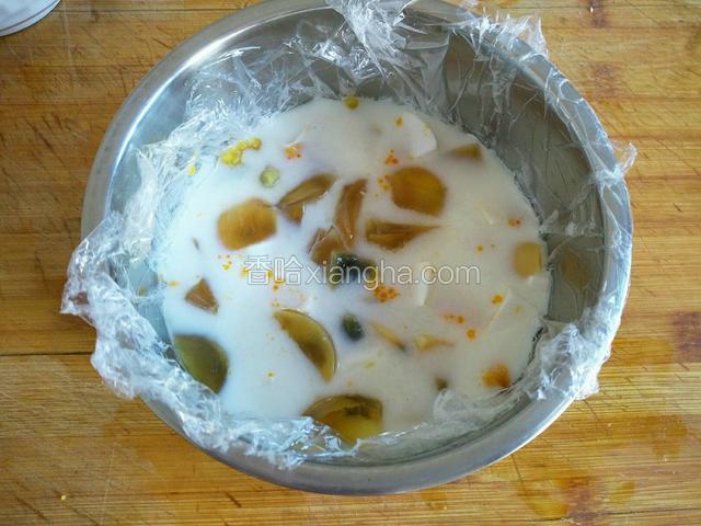 4.准备一个碗,下面铺一层保鲜膜或者锡纸都可以!
