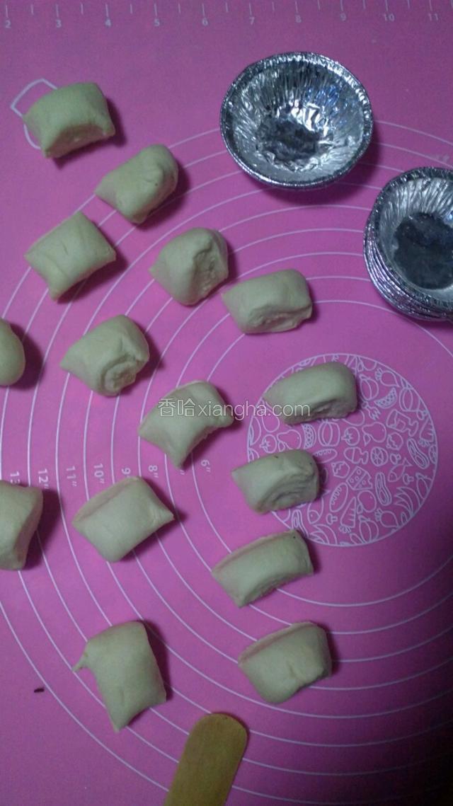 1.准备好上述材料,黄油20g隔水化开和面用,(剩下90g裹面用)