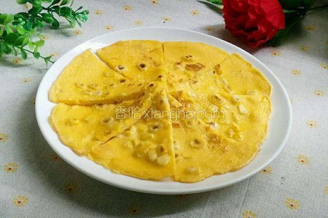 6.锅加至7成热下油,倒入蛋糊摊开摊薄,煎至两面金黄即可。
