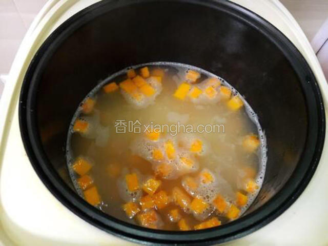 5.20分钟后放入南瓜块继续煮,