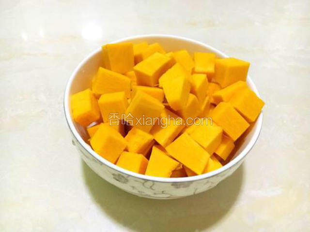 2.南瓜去皮去瓤切小块备用。
