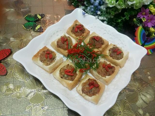 2.切3*3*1.5厘米左右方块装盘;