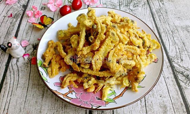 5.鸡蛋打碗里,打散,加入35克面粉搅拌成蛋糊