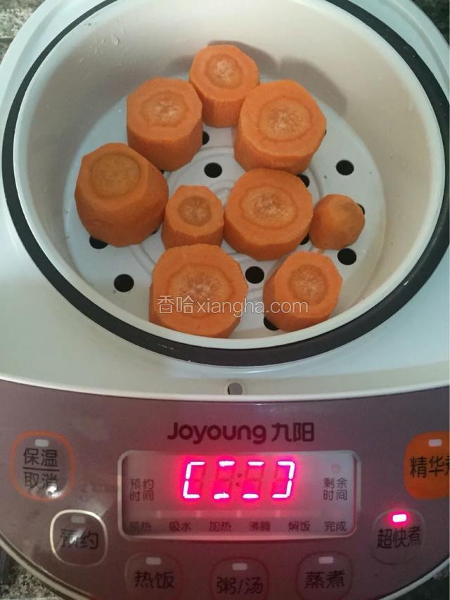 1.胡萝卜去皮洗净切小块上锅蒸熟,碾压成泥