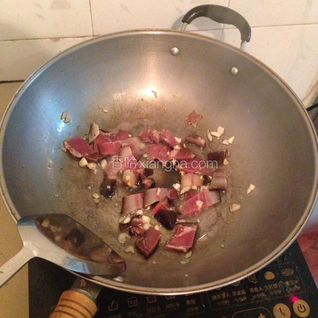 3.锅内倒入适量油烧热,再放入蒜末爆香。