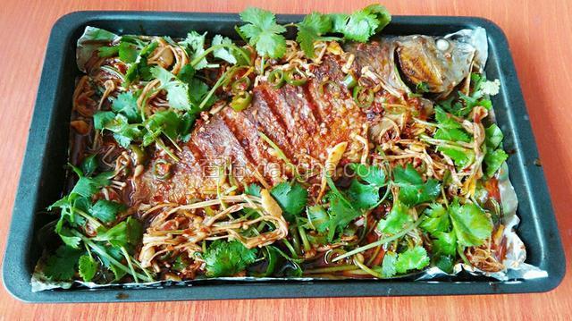 4.把腌好的鱼放进烤箱,上下火180度烤制20分钟左右。