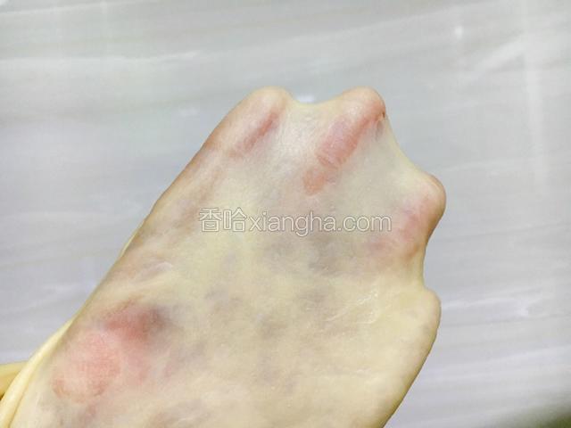 2.半小时后,加入常温软化的黄油,再次启动面包机,揉至扩展阶段