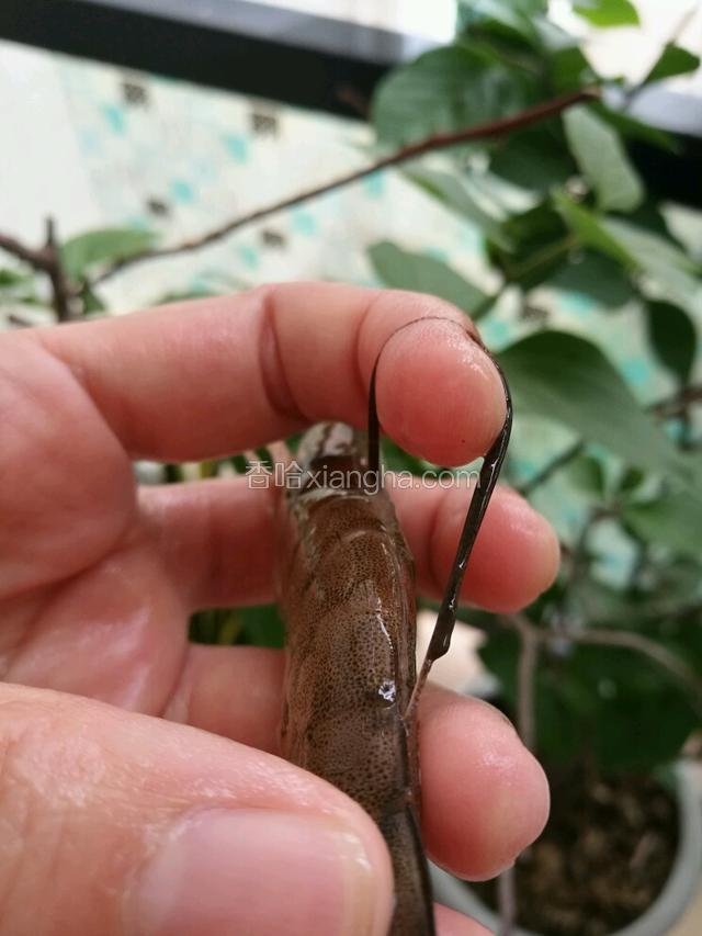 3.用剪刀沿着虾背剪开,再用牙签把虾线挑出来,这一步会比较耗时间,但是一定要弄干净咯,不然会影响口感