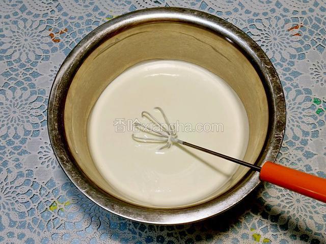 1.酸奶、奶油奶酪、淡奶油同放一盆中隔水加熱融化,離火後攪拌成細膩的奶酪糊