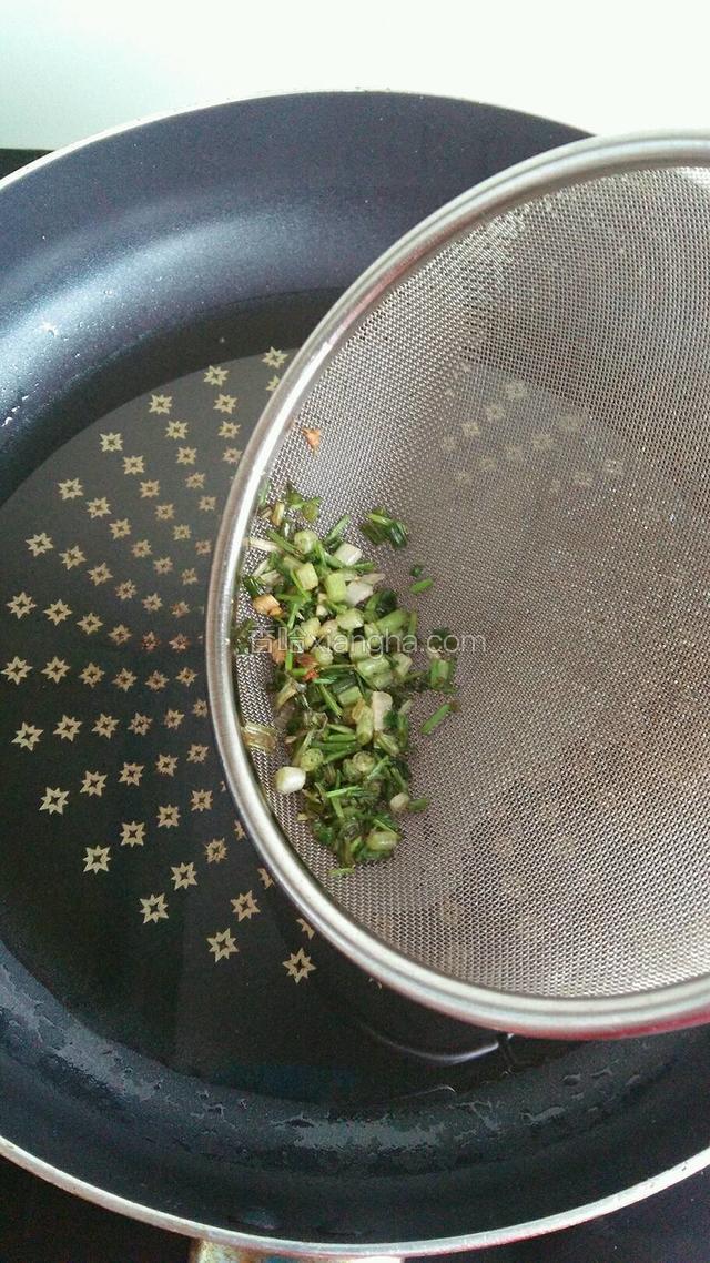 5.倒入蒜末煸香,金黄色后捞出不用。