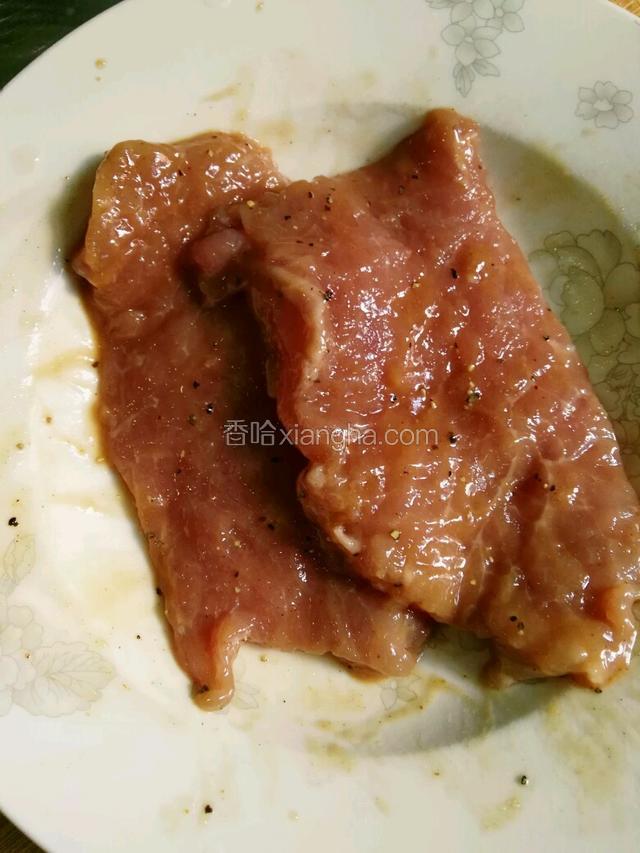 4.松好的猪肉加适量盐 五香粉 蚝油 胡椒粒 和适量水淀粉