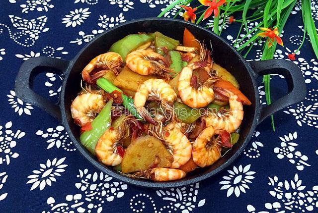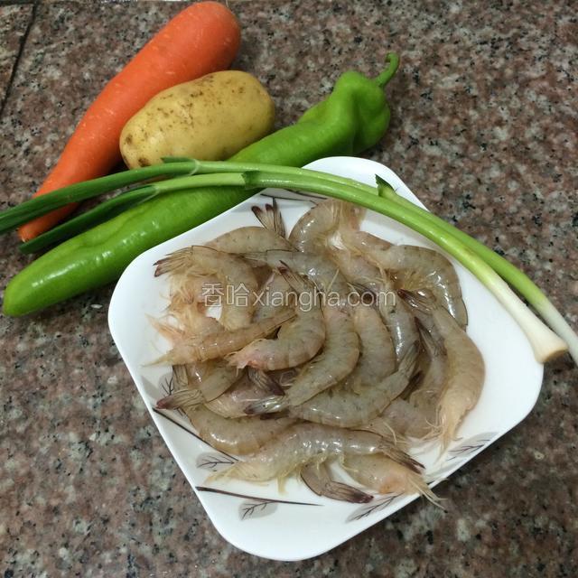 1.准备食材,虾去头洗净。