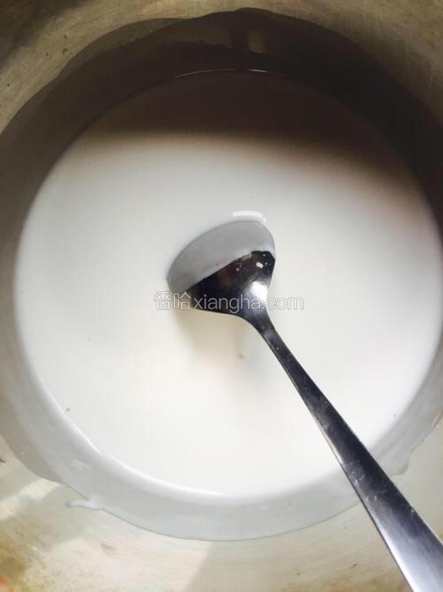 3.把烧开的糖浆水冲入水晶粉水中,边冲边搅拌