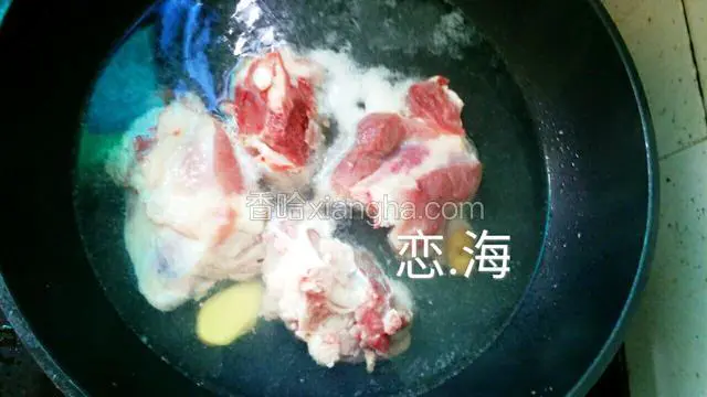 2.处理筒骨,把筒骨洗净加姜片焯水备用