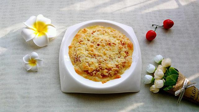 6.米饭表面撒上马苏里拉奶酪碎,放入烤箱,180度上下火10分钟。