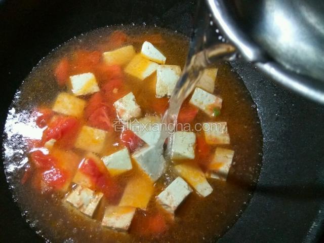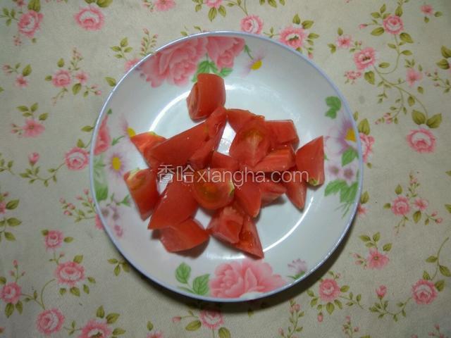 4.锅内油烧热,葱花爆香,放入西红柿翻炒。