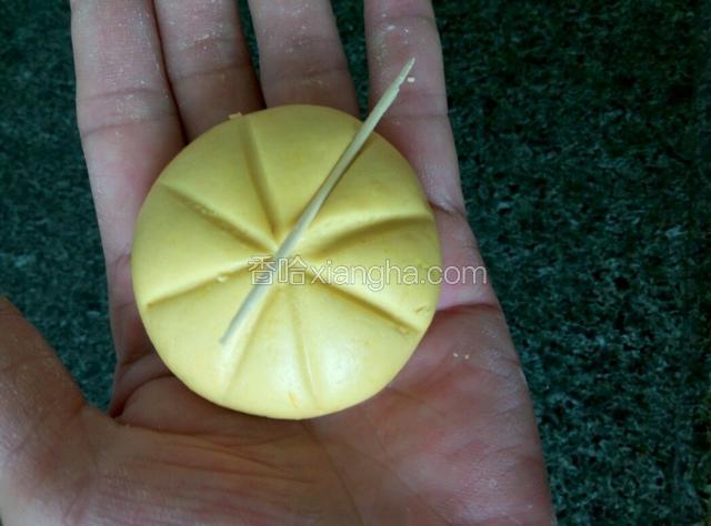5.封合再揉圆揉光滑,用牙签压米字痕。