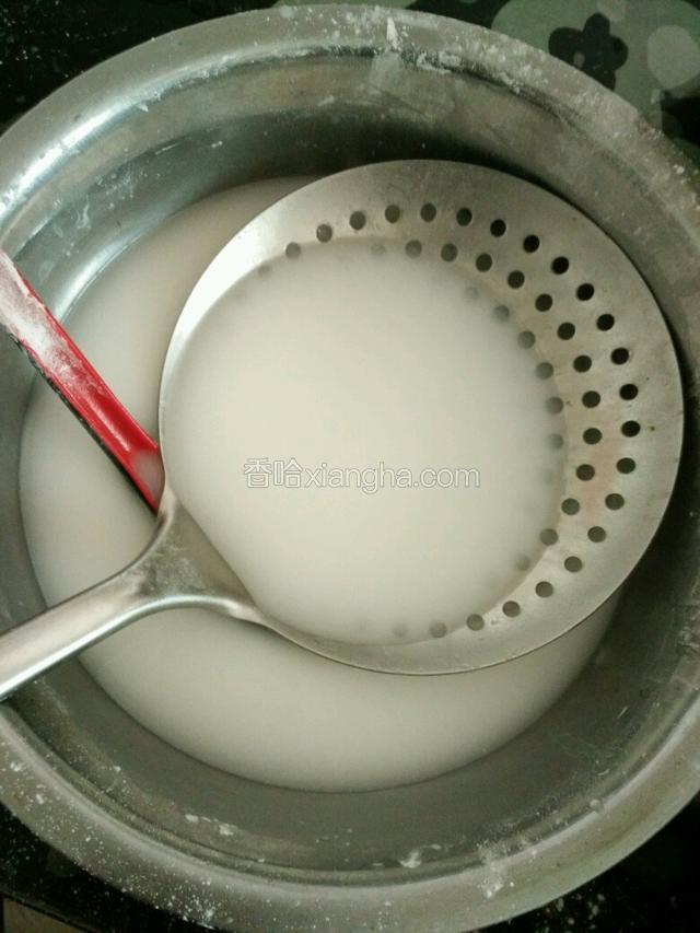 2.准备一个碗 碗里放些许水 在准备一个爪笠 在准备一个大碗 或者是盆 里面放上糯米面