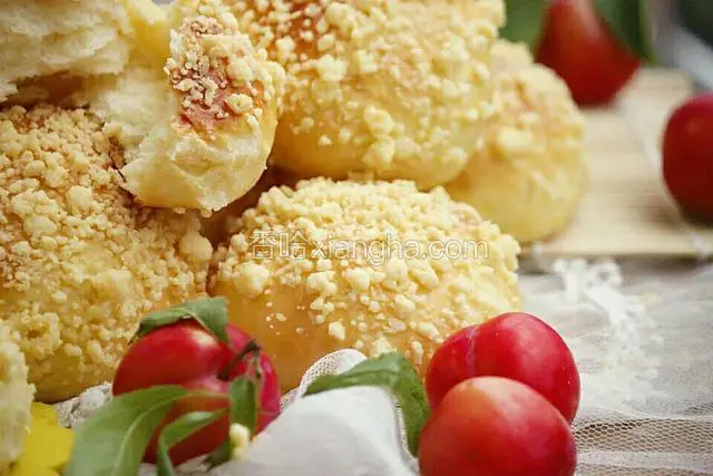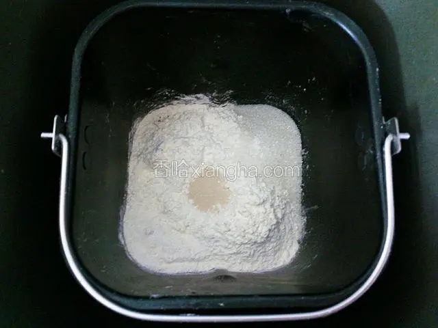 6.再加入240g高粉,35g白糖和2g盐对角放,4g酵母挖个坑放中间。