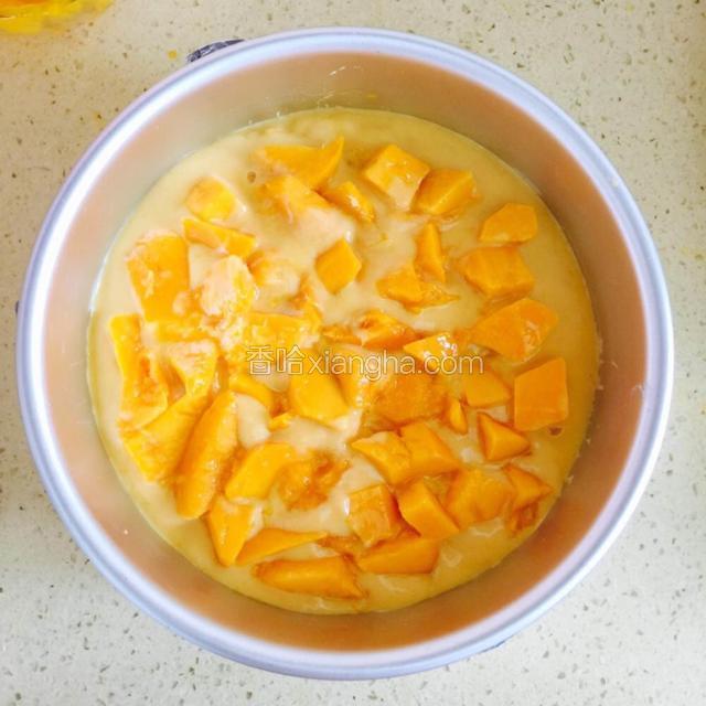 2.酸奶奶提前制好备用,鱼胶片倒水泡软,牛奶、糖、水量好备用,芒果去皮切块去300克打泥