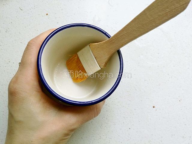 15.取一个烤杯,用刷子将烤杯内部簿簿的刷一层。