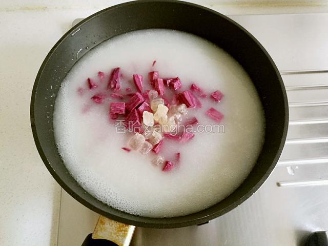 6.用勺子慢慢的搅拌,开小火慢慢地熬煮(要画圈圈的搅拌,不然会粘锅)
