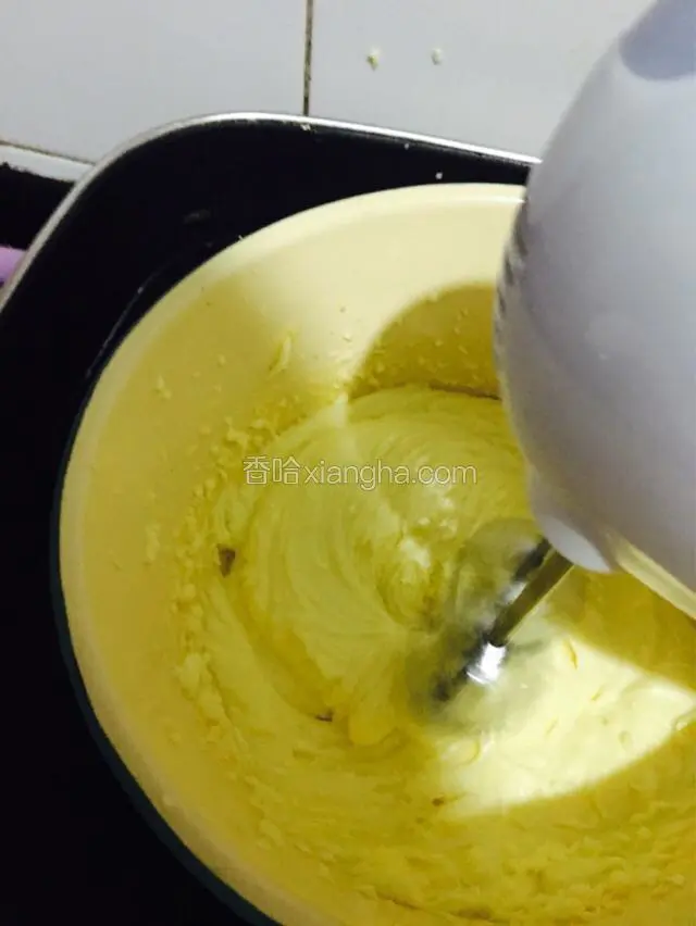 2.将300g奶油奶酪隔热水融化后加60g糖用打蛋器搅拌均匀