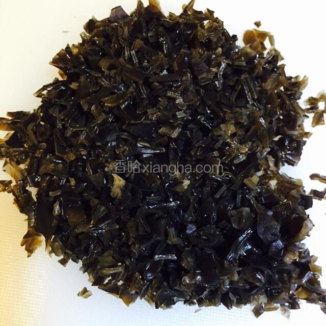 6.将焯熟的芸豆沥去水分再剁碎备用。