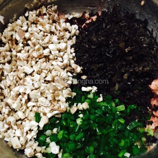 1.猪肉2斤,绞成肉泥后朝着一个方向搅拌上劲。