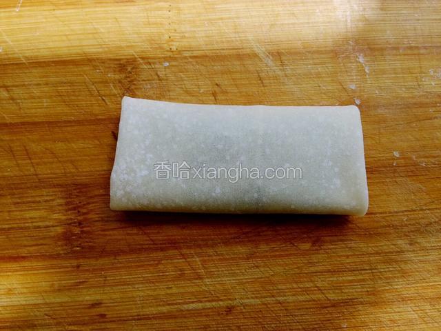 3.取一张春卷皮,在下部放一勺豆沙馅。
