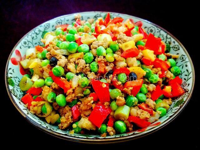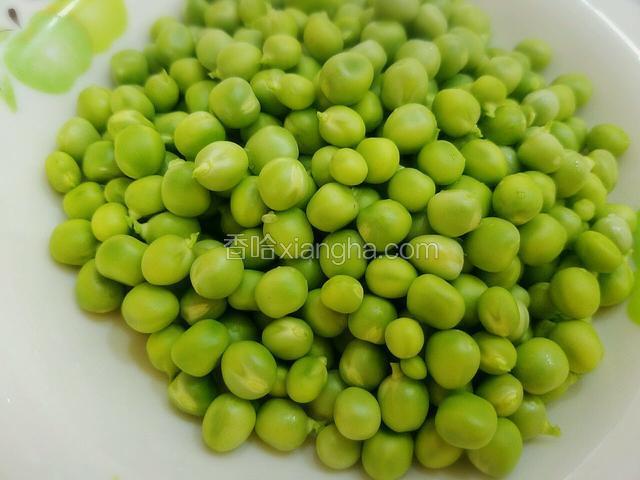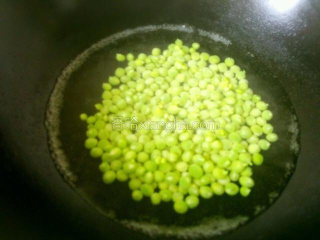 6.锅里烧开水,将豌豆放锅里炤一下后盛出来。