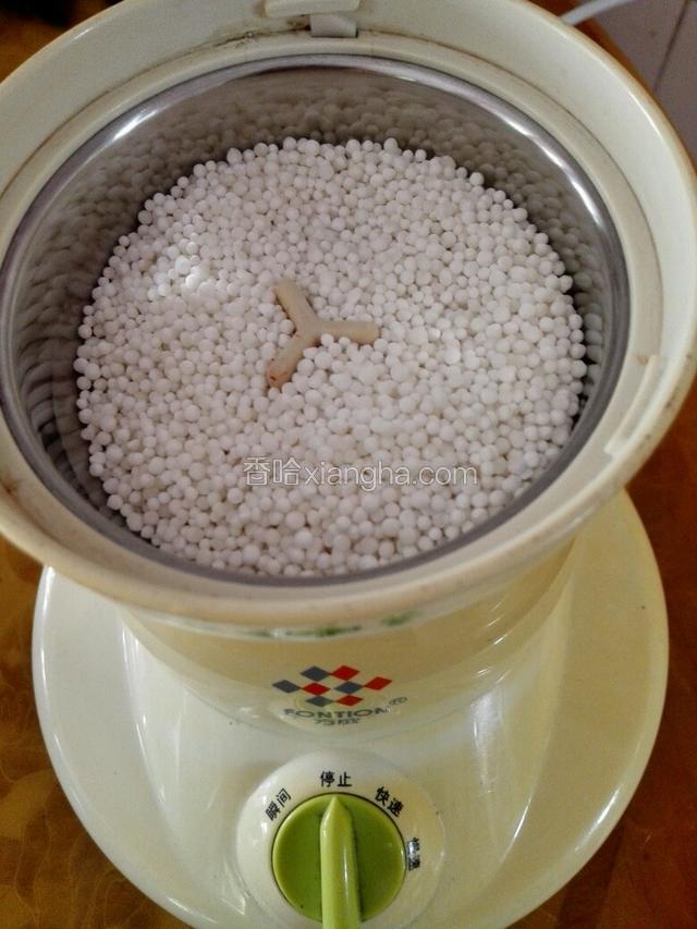 3.把西米用果汁机用磨粉功能碾成粉。