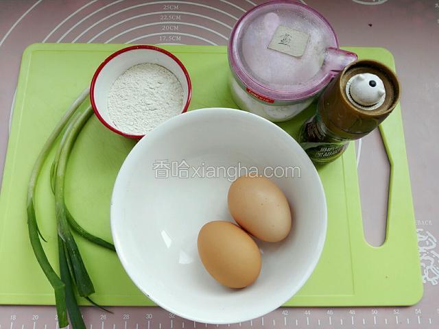 1.准备食材,香葱洗净,面粉,盐,鸡蛋,黑胡椒备上