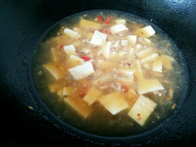 2.将豆腐切成小块一厘米宽两厘米长的小块