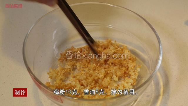 5.将炸好的蒜末和未炸的蒜末,放入同一个器皿中,在加入盐、味精、鸡粉、香油搅拌均匀备用