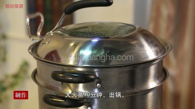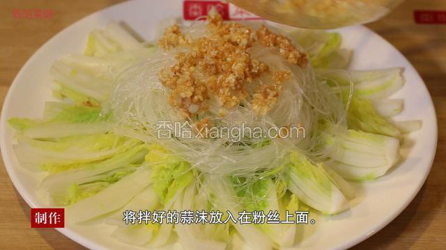 4.锅内下50g色拉油,转大火烧至7成热,下一半蒜末,并炸至黄金色