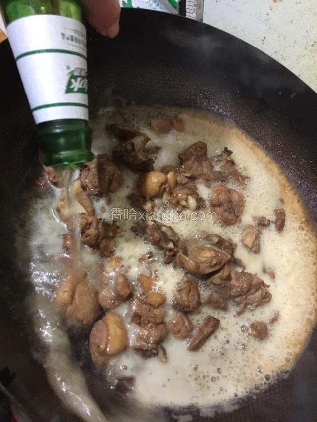 6.加入一瓶啤酒.大火烧烧开.加入辣椒➕盐.小火慢炖20分钟
