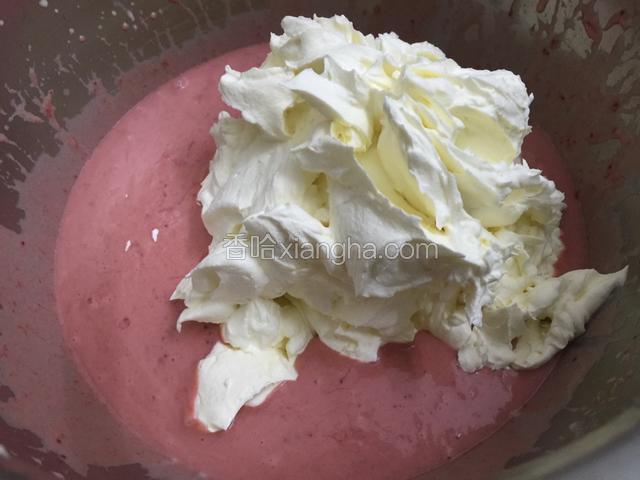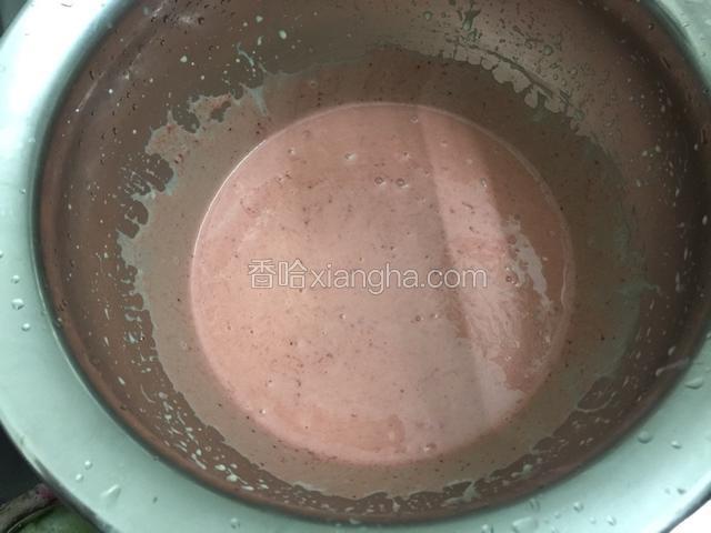 4.加入泡软的吉利丁.搅拌至完全融化.小火慢慢搅拌浆料至粘稠