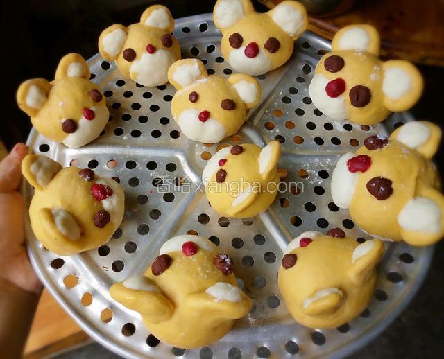 1.成品图。可爱的小熊南瓜馒头!