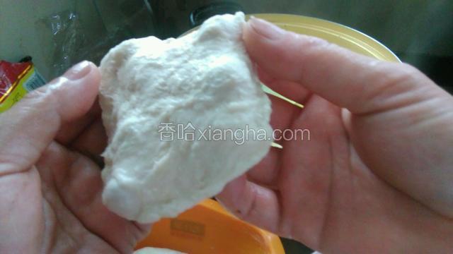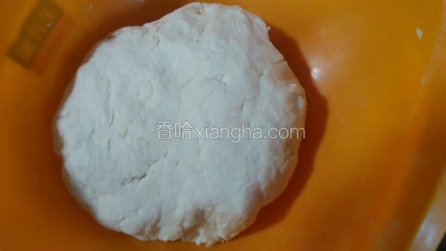 5.揉至没干粉就可以了,不需要很光滑的。如图。盖上保鲜膜醒面半小时。