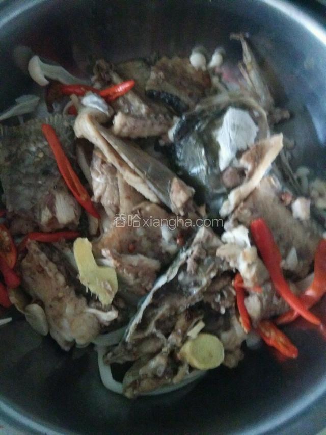 2.把鱼头和鱼骨用料酒,生抽,盐淹好备用