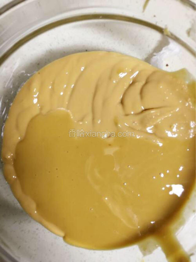 5.上半部分颜色稍浅的是花生酱糊,下半部分颜色稍深的为黄油低粉糊。