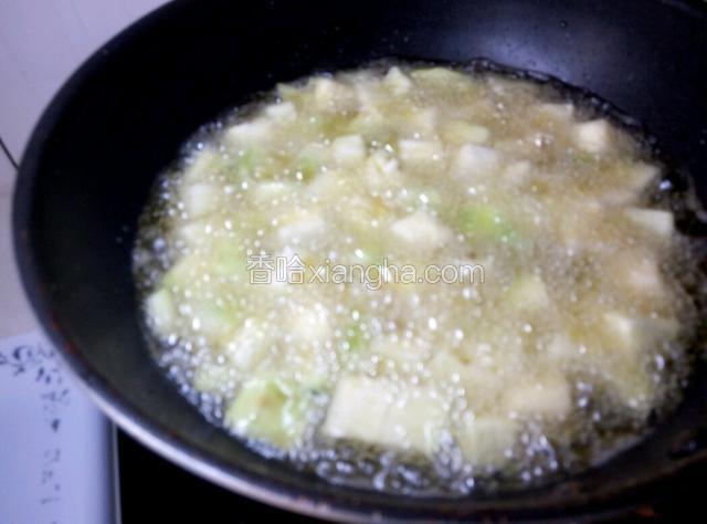 6.热锅,倒油,量要多点油,因为马上要让土豆,茄子过油,