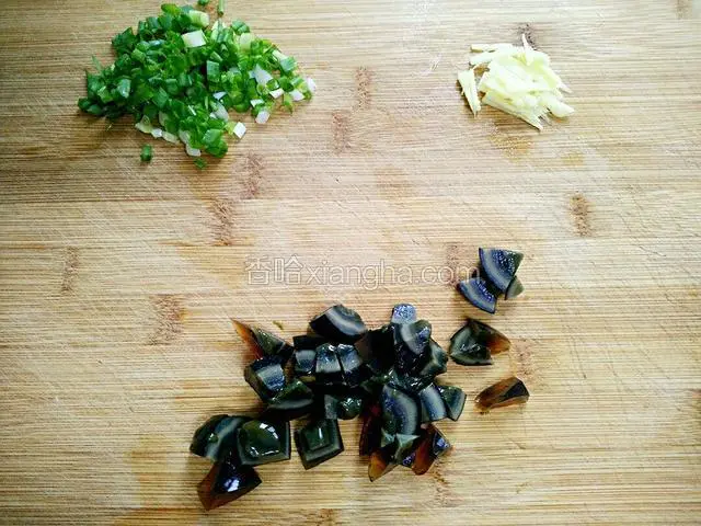 1.大米、葱、姜、枸杞洗净,肉未、皮蛋。