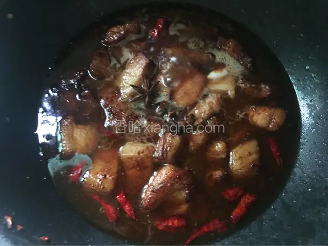 5.倒入五花肉,让每块五花肉均匀包裹上糖