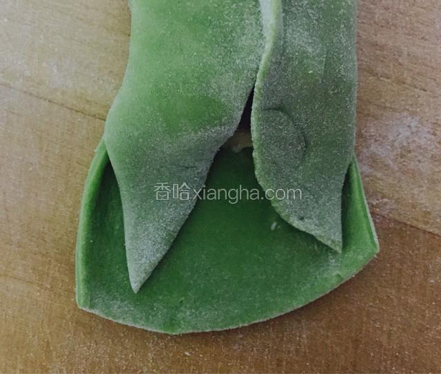 6.把莲子放在饺子的一端做眼睛,此处面要捏的紧实一些,避免蒸后馅儿里面的汤汁流出