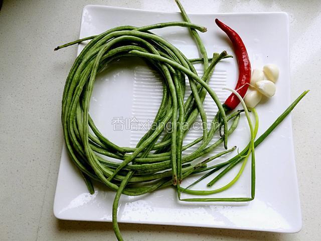 2.豆角摘掉两头老丝,清水里清洗干净。