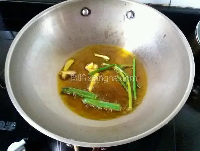 5.起炒锅放花生油,烧热后放葱姜爆香。