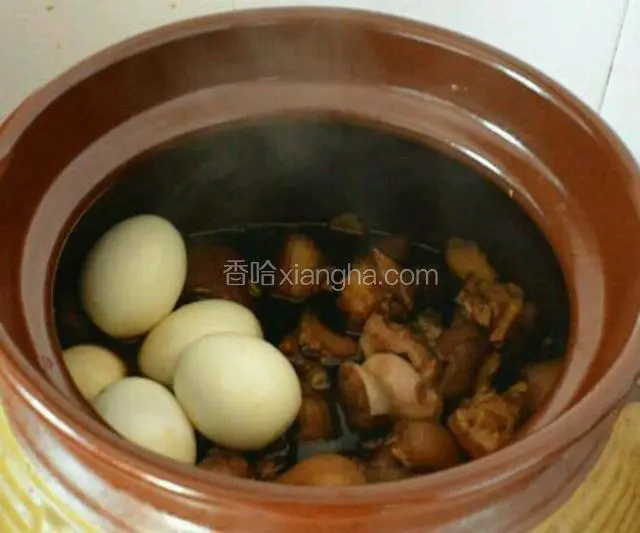 6.大火煮开后,放鸡蛋入煲同煲2个小时以上。